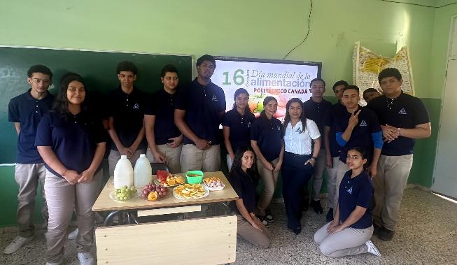 En conmemoración del Día Mundial de la Alimentación, la comunidad educativa del Politécnico Canadá realizó una serie de actividades que promovieron la importancia de una dieta equilibrada y la reflexión sobre los hábitos alimenticios saludables. El acto cívico de la jornada estuvo ambientado con mensajes sobre el valor de los alimentos naturales, la reducción del desperdicio y la responsabilidad de cada persona frente a su bienestar físico.
